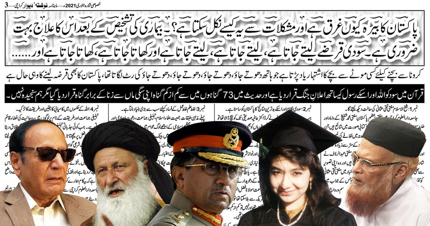 نمبر….5 …… پاکستان کا بیڑہ کیوں غرق ہے اور مشکلات سے یہ کیسے نکل سکتا ہے؟۔بیماری کی تشخیص کے بعد اس کا علاج بہت ضروری ہے۔ سودی قرضے لیتے جاتا ہے، لیتے جاتا ہے ، لیتے جاتا ہے اور کھاتا جاتا ہے، کھاتا جاتاہے اور …… کرونا سے بچنے کیلئے کسی موٹے سے بچے کا اشتہار یاد پڑتا ہے جو ہاتھ دھوتے جاؤ، دھوتے جاؤ، دھوتے جاؤ ، دھوتے جاؤ کی رٹ لگاتا تھا، پاکستان کا بھی قرضہ لینے کا وہی حال ہے قرآن میں سود کو اللہ اور اسکے رسول کیساتھ اعلانِ جنگ قرار دیا ہے اور حدیث میںتہتر(73)گناہوں میں سے کم ازکم گناہ اپنی سگی ماں سے زنا کے برابر گناہ قرار دیا گیا مگر ہم سنجیدہ نہیں۔