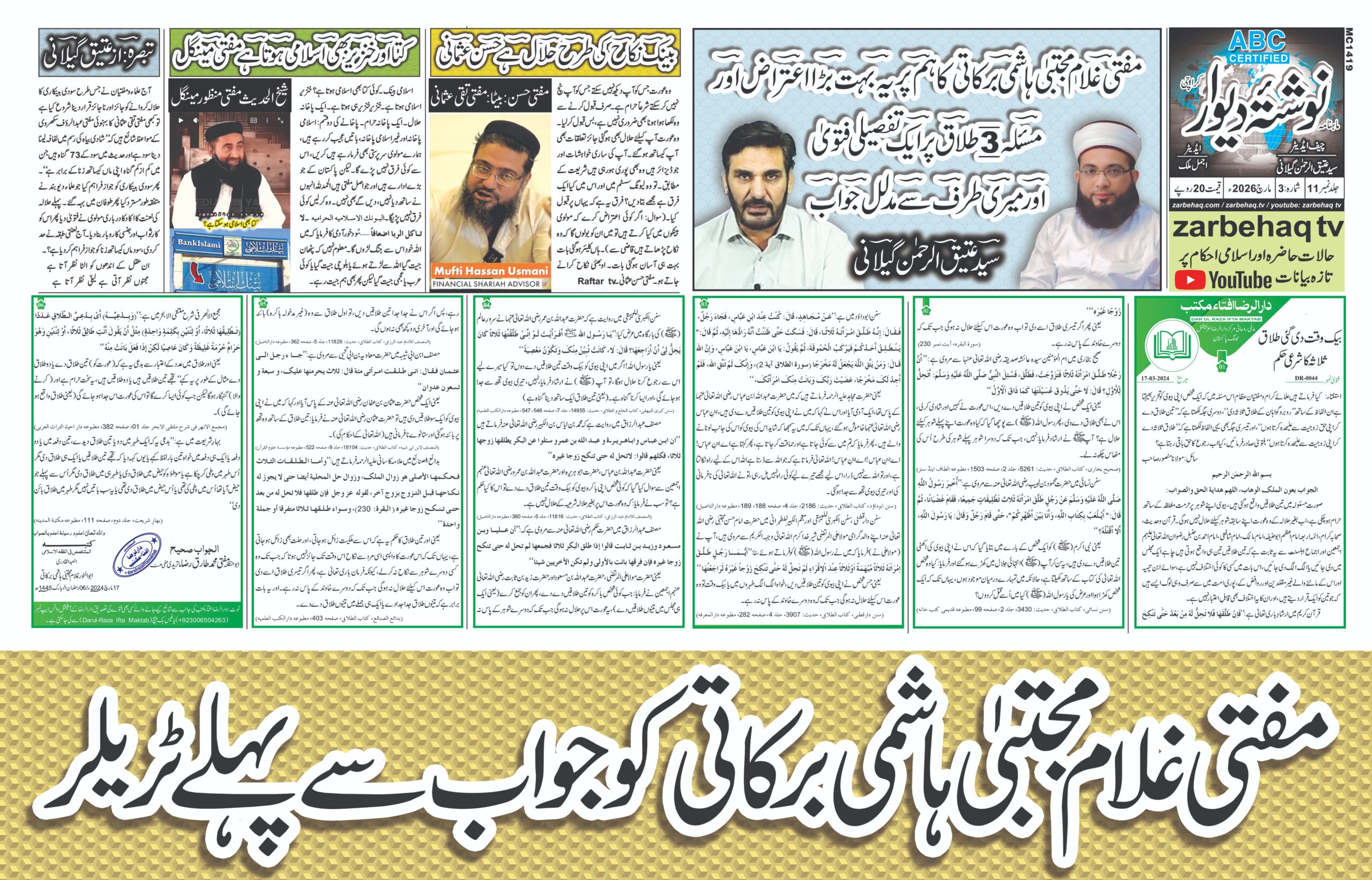 مفتی غلام مجتبیٰ ہاشمی برکاتی کو جواب سے پہلے ٹریلر اخبار: نوشتہ دیوار